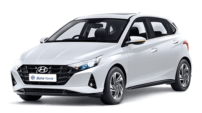 Hyundai i20 găzduiește confortabil 4 pasageri și oferă spațiu pentru până la 2 valize, fiind perfecta pentru excursii urbane sau escapade de weekend. Cu designul său elegant și performanța eficientă, i20 oferă o experiență de condus încântătoare, care îmbină stilul cu placutul.