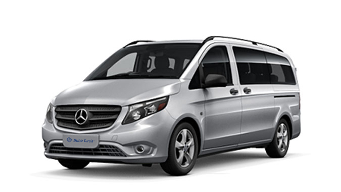 Mercedes Vito oferă locuri confortabile pentru 7 pasageri și spațiu generos pentru bagaje, putând transporta până la 5 valize. Ideal pentru excursii de familie sau ieșiri de grup, acest minivan îmbină confortul cu utilitatea practică. Bucurați-vă de o călătorie plăcută și confortabilă.